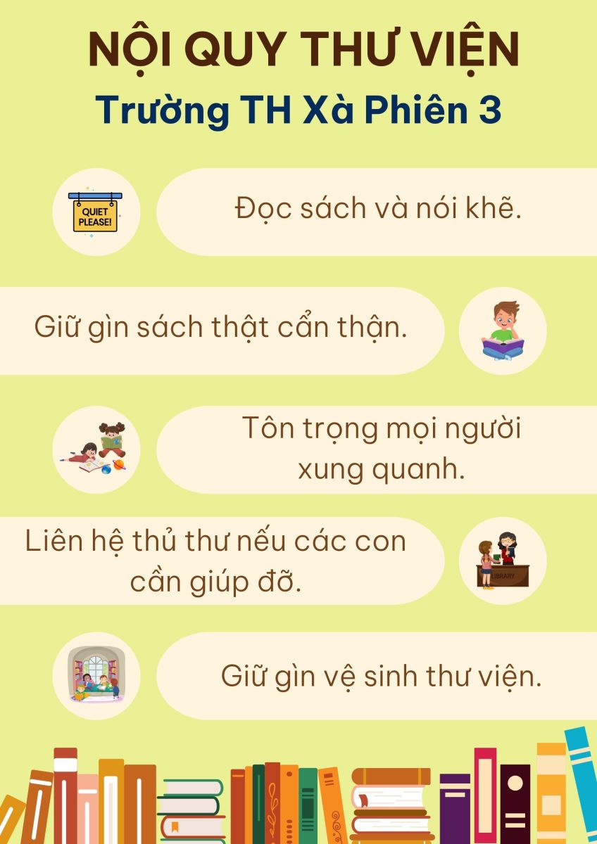 Trong thư viện của trường Tiểu học, mỗi học sinh đều phải giữ cho không gian yên tĩnh, tôn trọng sách và mọi người xung quanh. Việc trả sách đúng hạn và tình thần tự học là vô cùng quan trọng. Các em học sinh sẽ được hòa mình vào thế giới của tri thức, nơi nảy mình giữa những trang sách màu hồng và xanh, mang theo mùi của giấy in và cây viết mới mỗi khi bước chân vào.